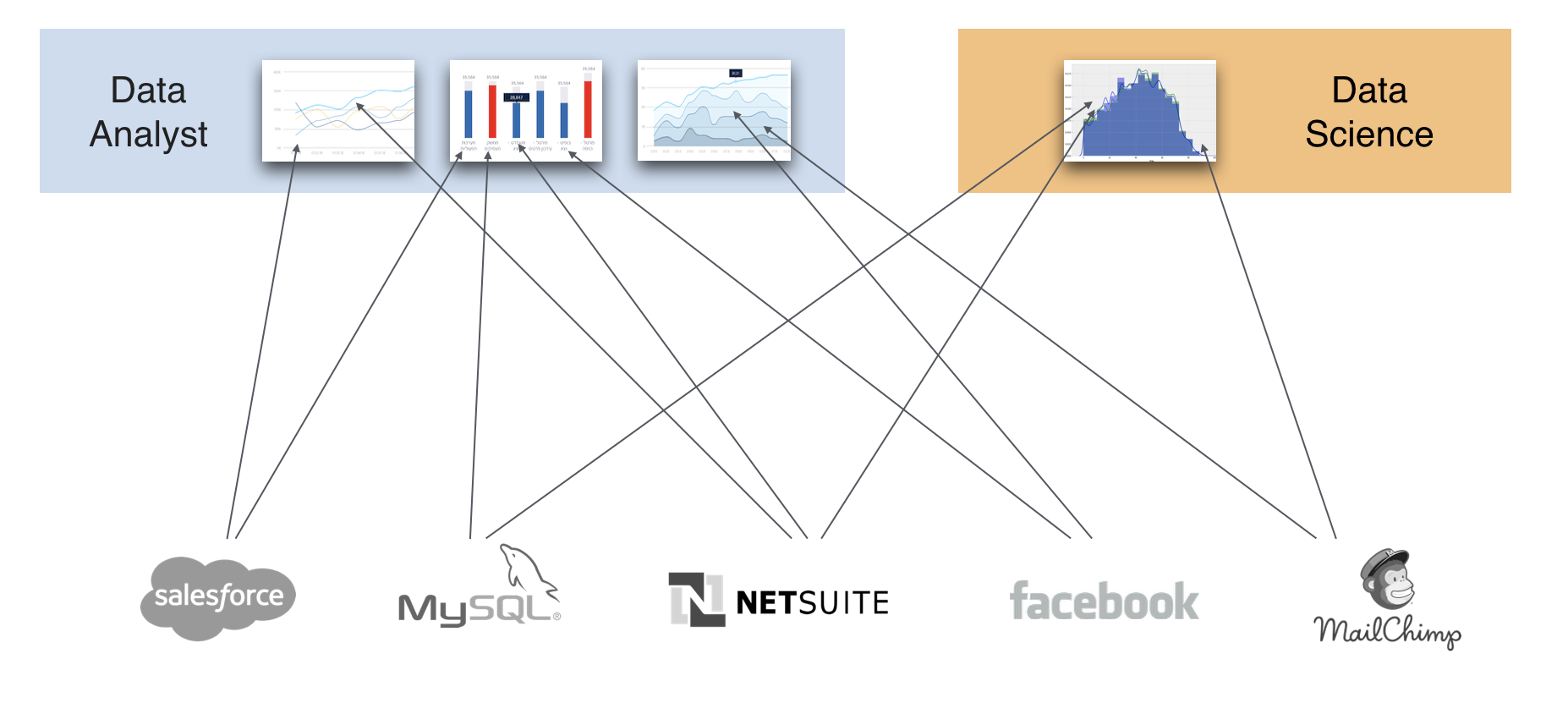 - חלק ממקורות המידע אינם פשוטים להתממשקות הנאיבית של כלי הדוחות. למשל משיכת נתוני Salesforce , netsuit או כל API אחר.