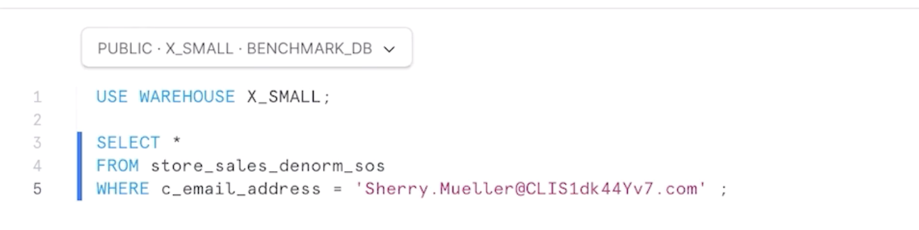 בדמו הוצג איך תהליך כזה לוקח 37 שניות על טבלות של 28 מיליארד רשומות עם WH בגודל 2XL. לאחר שהאינדקס הופעל השאילתא סיימה תוך 3.3 שניות ,עם WH של X-Small. ללא ספק נתון מרשים לפעולה על טבלה של 28 מיליארד רשומות