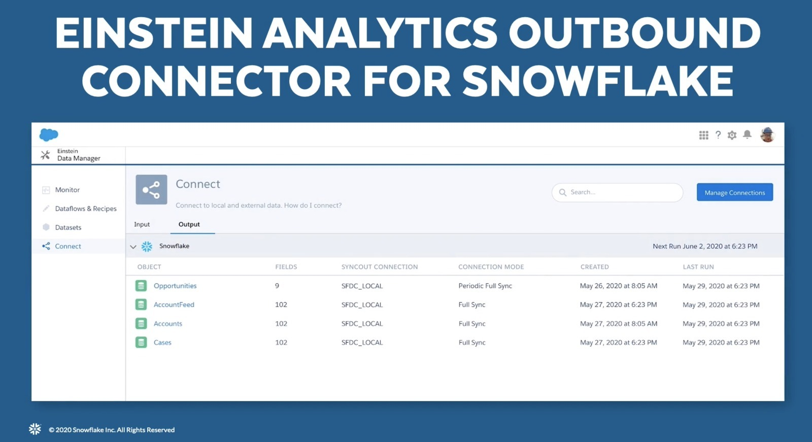 בהמשך לפוסט הקודם על Data Sharing כל הדאטה של סיילספורס יהיה זמין בסנופלייק. ולהיפך, כל המידע בסנופלייק זמין לאיינשטיין.